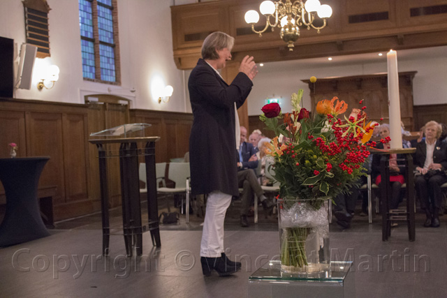 Preek van de leek Astrid Nienhuis burgemeester van Heemstede "De menswereld", in de Oude Kerk op het Wilhelminaplein. |