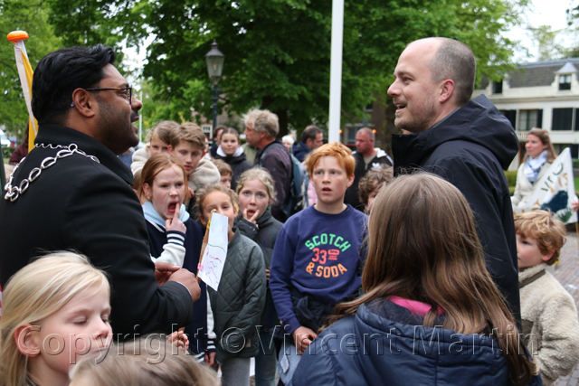 Kinderen met hun ouders uit de Indische buurt en omgeving bieden burgemeester Binnendijk 1004 handtekeningen aan voor het behoud van het speelveldje op het Sein-terrein aan de Meerweg, de gemeente wil daar een opvang voor asielzoekers realiseren, en 2 betogers waren bij het raadhuis aanwezig om hun stem te laten horen voor de komst van asielzoekers.