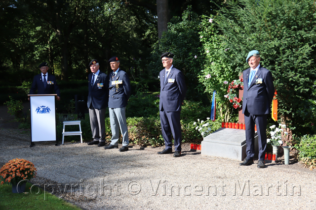 Herdenking bij het Indië monument op Algemene Begraafplaats aan de Herfstlaan in Heemstede van 6 tussen 1946 en 1950 omgekomen Nederlandse militairen: